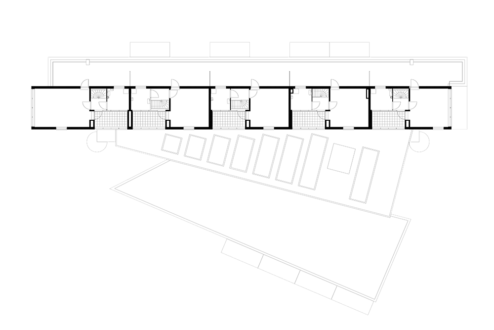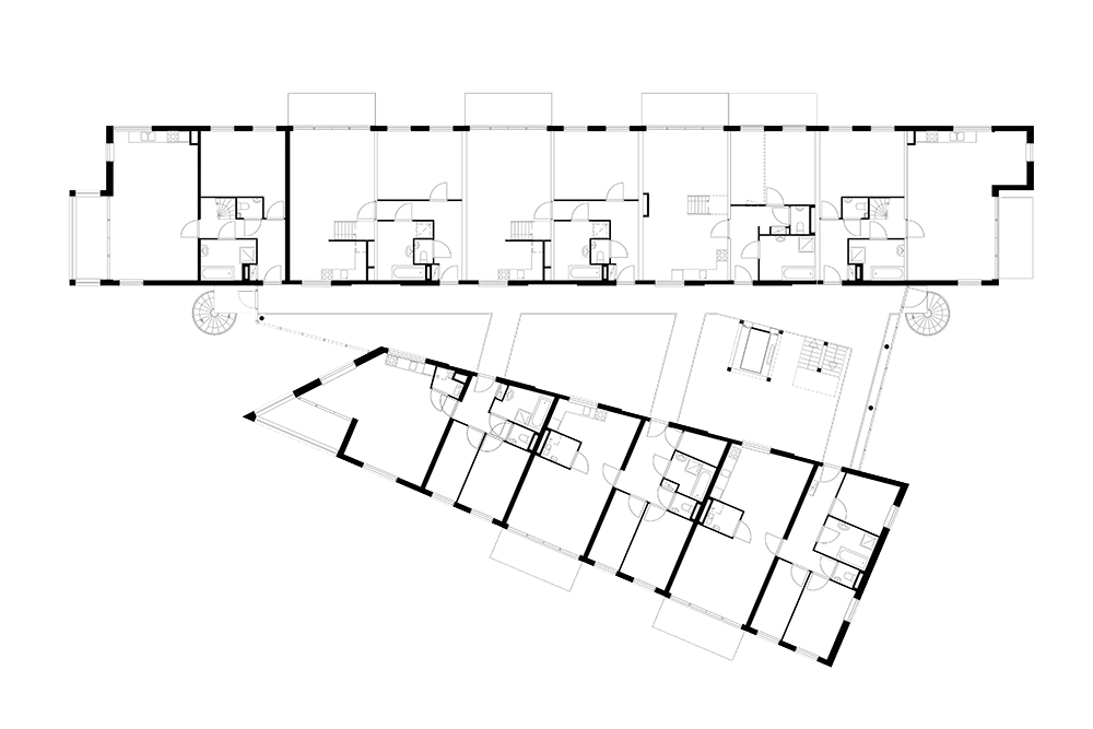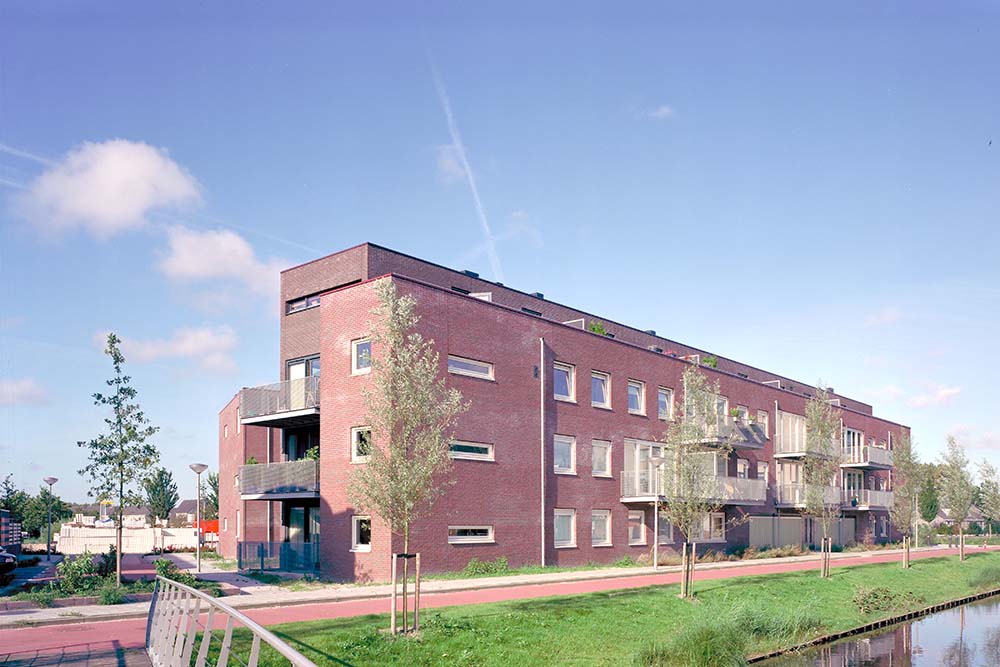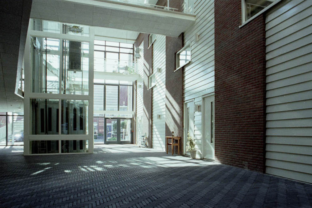 Albertshoeve in Castricum bestaat uit een stroken verkaveling waar diagonaal een groenzone doorheen loopt. Voor één van de driehoekige kavels die door deze structuur op de uiteinden ontstaan is een ontwerp gemaakt. Om de locatie optimaal te benutten zijn 22 appartementen in twee stroken in de periferie gesitueerd rond een gemeenschappelijk binnenruimte. Elk appartement is optimaal afgestemd op bezonning, uitzicht en beschikbare ruimte. De binnenwanden van het atrium zijn bekleed met geluidsabsorberende witte houten delen die het door het dak binnen vallende licht reflecteren en het atrium lichter maken.